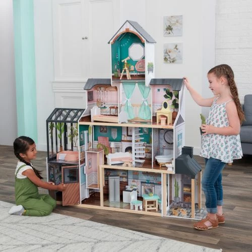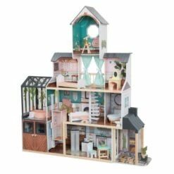 Bring make believe to life with the Celeste Mansion Dollhouse from KidKraft. A dreamy house for 12-inch dolls, this enormous home features four floors packed with exquisite details. Your child’s dolls can ride up and dow