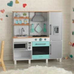 Serve up hours of imaginative fun for aspiring chefs with the KidKraft Gourmet Chef Play Kitchen with EZ Kraft Assembly! Featuring a spacious refrigerator with play ice maker, a deep freezer and a microwave with a showc