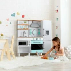 - 3 modes of play – kids can cook, clean dishes and organize shelves and refrigerator