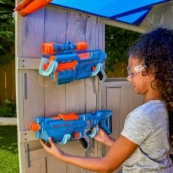 A top-secret hideout for surveillance, planning and training, the KidKraft Nerf Geo Strike Headquarters is a geodesic dome that lets you spy on the competition with a hidden periscope and then plan your defense. Three en