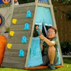 Brace for battle and defend your territory with the KidKraft Nerf Scout Defense Post. This elevated fort-like structure has amazing 360-degree fun. Guard yourself with the shield, crawl tunnel and bunker. Store blastersÂ
