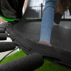 Bounce the day away on the 12ft HyperJump 4 Spring Trampoline. The new series HyperJump 4 offers all the big bounce benefits of a spring trampoline with increased protection from metal components. Little ones can jump, twist and flip carefree on the HyperJump 4 with the support of the reinforced safety netting and foam-covered metal springs to protect small wandering hands. Our curved poles allow kids to safely fall on the net with the smart zipless entry making it easier to enter and exit the trampoline.