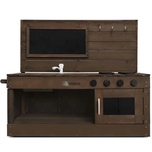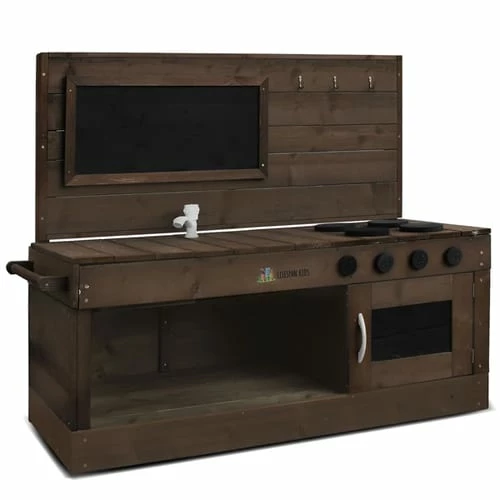 Outdoor cooking adventures will begin with the Eden Outdoor Play Kitchen! Little chefs can cook up a storm with their play pretend kitchen. An outdoor stove top, oven and sink tub let them get creative, with plenty of storage for toys and play utensils.