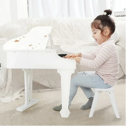 Allow your child to learn the art of music with the Grand Piano. Like a true pianist sitting at the Grand Piano Bench, your little one can produce a beautiful melody and lovely tones on the electronic piano. Not to mention the astounding benefits playing the piano has to their growing brain.