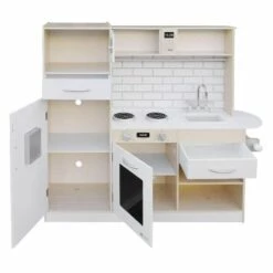 Filled with tons of prop kitchen appliances, the Laguna play kitchen allows little chefs to dabble in the culinary arts.