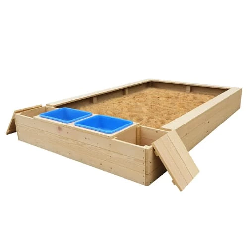 This Mighty Rectangular Sandpit has it all: a huge play area for little ones to get creative, play tubs for water, and storage compartments for toys and tools. The most exciting sand experience outdoors for your kids and their friends. Keep the sand clean between uses with a wooden cover.