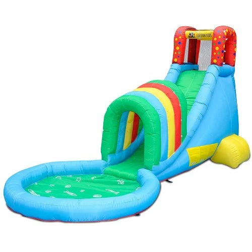 Relax and unwind in the heat of summer with the Oasis slide and splash. This 2.6m waterslide appears like a mirage on a hot day. Attachable sprinklers coat the slide at the top and middle, keeping it wet as kids rush to the comfort of the large 1.8m splash pool.
