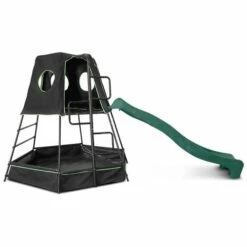 The Pallas Play Tower with Green Slide is a multi-function set with many options for play that your little ones are bound to love. Watch your kids whiz down the 2.2m wavy slide, or use the large play space underneath, perfect for a sand pit or ball pit. Durable materials such as PVC Coating and high-grade polyester are weather resistant, with a sun shade cover that provides extra UV protection.