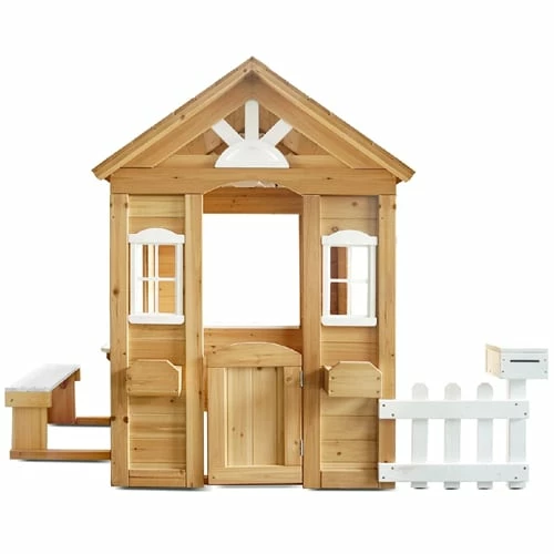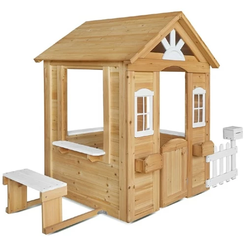 Decorated with quaint features like windows, flower planters, picket fence, and a mail box to provide endless fun for your little one.