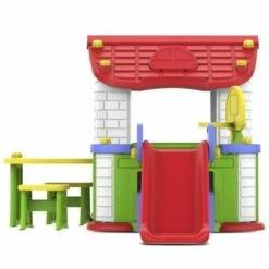 Our fun-sized Wombat Plus Playhouse is designed for toddlers. All components are plastic with rounded edges, which are smooth on soft hands with no small bits or sharp edges. Comes with an awesome basketball hoop and slippery slide for heaps of fun.
