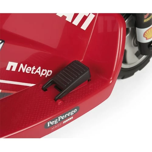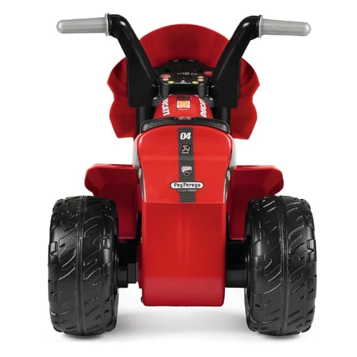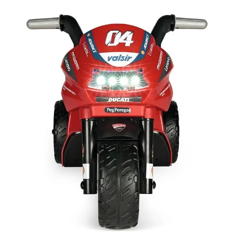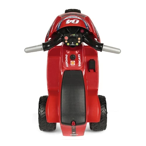 Fun in pole position with an electric Ducati motorcycle featuring lights and sounds.