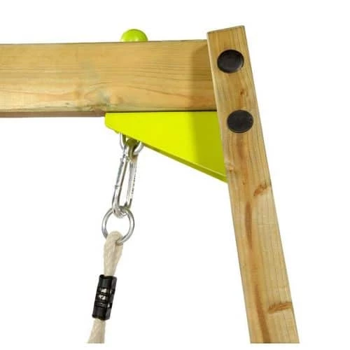 The swing seat fixes to the existing swing hanger on swing sets and climbing frames using a carabiner clip fastening (not included).