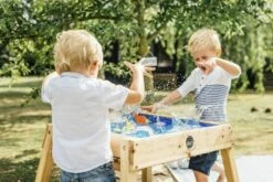 The wooden table can be filled with sand or water for splashing and sandcastles!