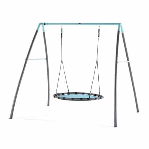 The extra high frame measuring 2.2 metres, grantees an even bigger swing, for increased performance. The stylish sky blue and grey metal frame is extra thick for strength with a textured finish. The steel is galvanised inside and out giving the swing set added durability and weather protection.